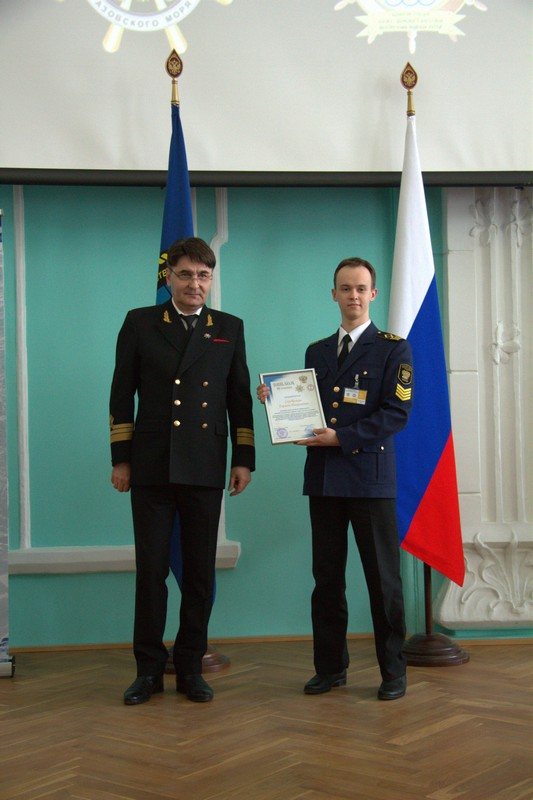 По специальности «Судовождение» среди курсантов Морского колледжа дипломом 3-й степени награждён курсант Криштоп С.К., дипломом 2-й степени – курсант Масловский Ф.С., дипломом 1-й степени и переходящим кубком – курсант Павликов И.П.