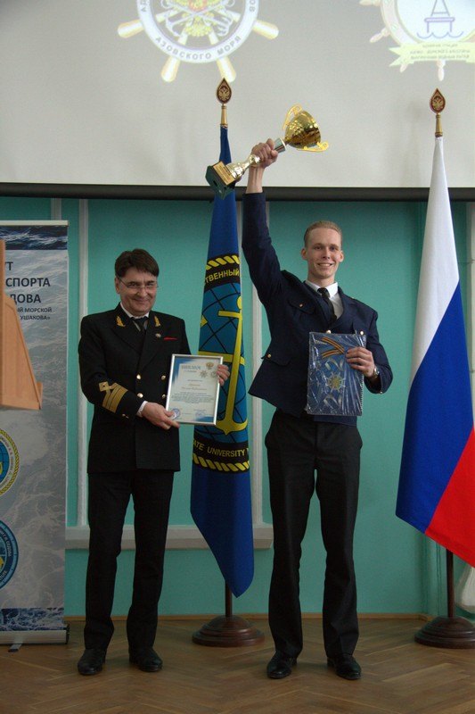 По специальности «Судовождение» среди курсантов Морского колледжа дипломом 3-й степени награждён курсант Криштоп С.К., дипломом 2-й степени – курсант Масловский Ф.С., дипломом 1-й степени и переходящим кубком – курсант Павликов И.П.