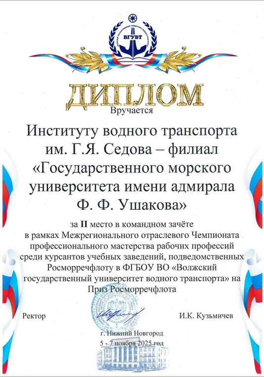 C 5 по 7 ноября 2025 года на площадке Волжского государственного университета водного транспорта (г. Нижний Новгород) прошел Межрегиональный отраслевой Чемпионат профессионального мастерства рабочих профессий на приз Росморречфлота.