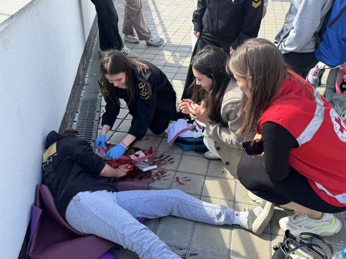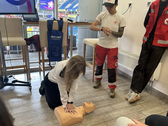 На площадке Российского Красного Креста обучающиеся прошли мастер-классы по первой медицинской и психологической помощи, которые провели сертифицированные инструкторы и психологи МЧС по уникальной интерактивной программе.