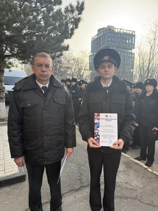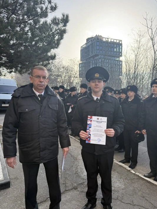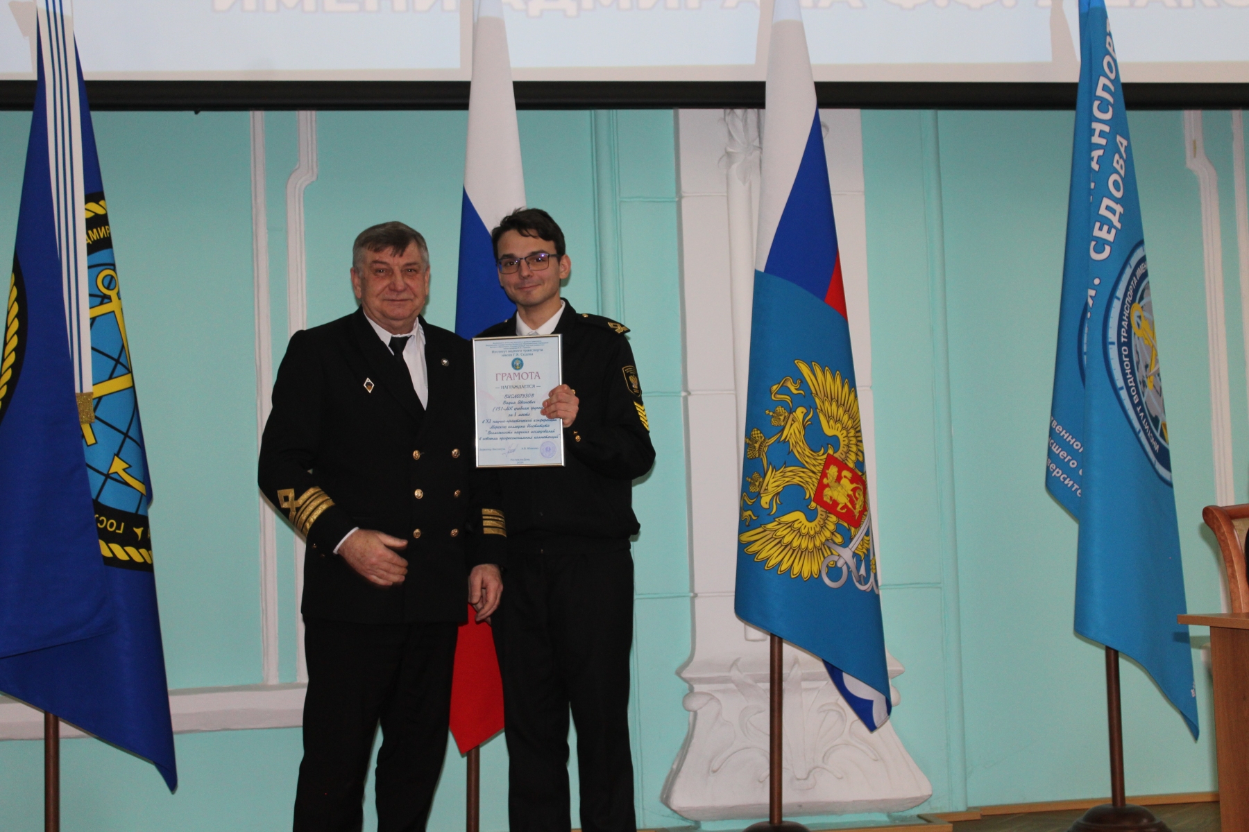 Вручение благодарственных писем курсантам Морского и Транспортного колледжей