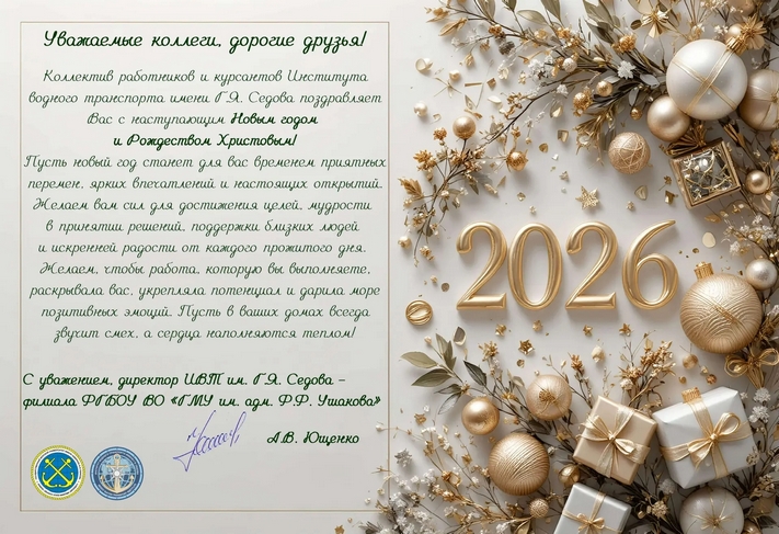 24.12.2025 г. состоялось заседание Ученого совета Института водного транспорта имени Г.Я. Седова — филиала федерального государственного бюджетного учреждения высшего образования «Государственный морской университет имени адмирала Ф.Ф. Ушакова». На заседании прошел конкурс на замещение должностей педагогических работников, относящихся к профессорско-преподавательскому составу. Рассмотрены и утверждены планы работы подразделений Института на 2026 год.